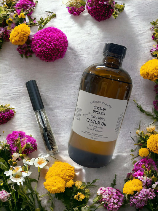 GLASS BOTTLE ORGANIC CASTOR OIL 100% NATURAL PURE COLD PRESSED HEXANE-FREE 16 OZ.