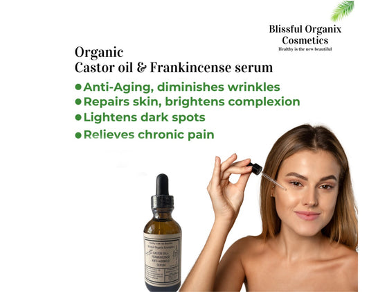 HANDCRAFTED ORGANIC CASTOR OIL+ FRANKINCENSE ANTI-WRINKLE FACE SERUM W/ LYMPHATIC GUA SHA